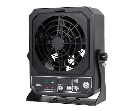 2200A台式离子风机可产生大量的带有正负电荷的气流,可以将物体上所带的电荷中和掉。当物体表面所带为负电荷,它会吸引气流中的正电荷,当物体表面所带为正电荷时,它会吸引气流中的负电荷,从而使物体表面上的静电被中和,达到消除静电的目的。