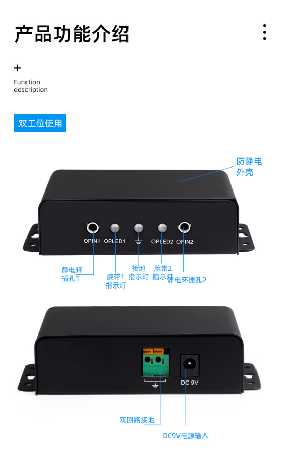 1、实时监测操作人员的静电手腕带佩戴情况及监控器地线的接入大地情况,遇异常状况立刻自动警报。